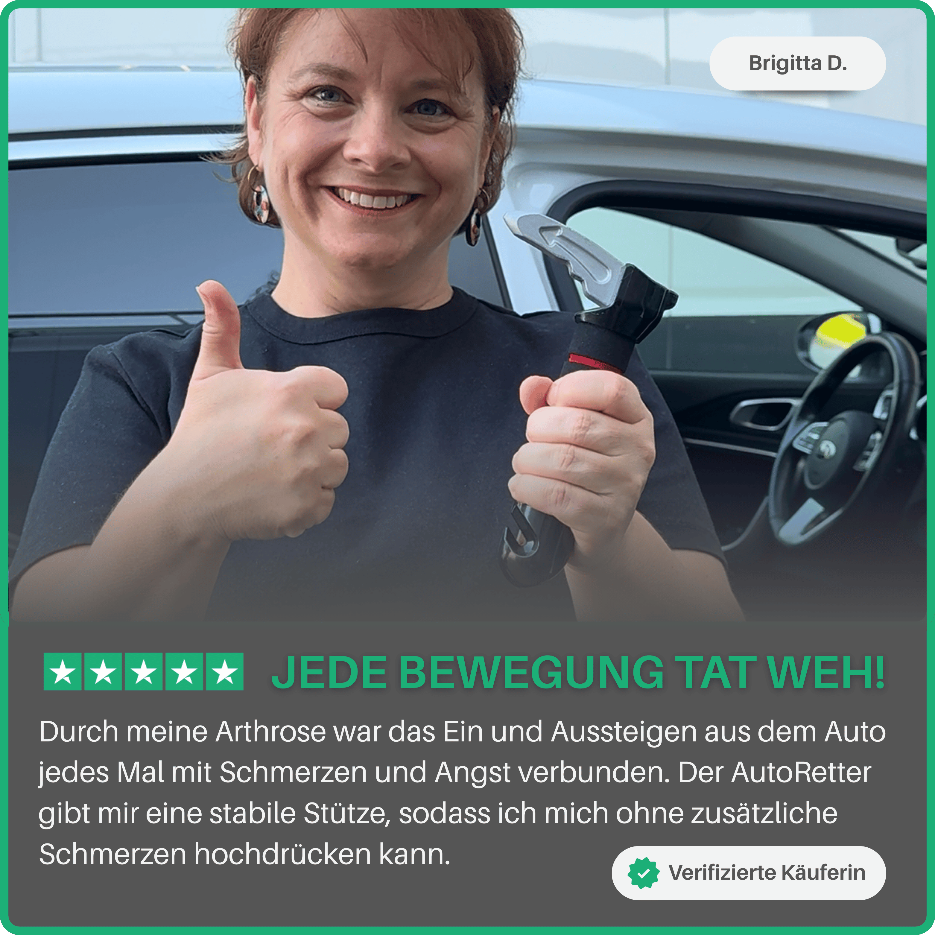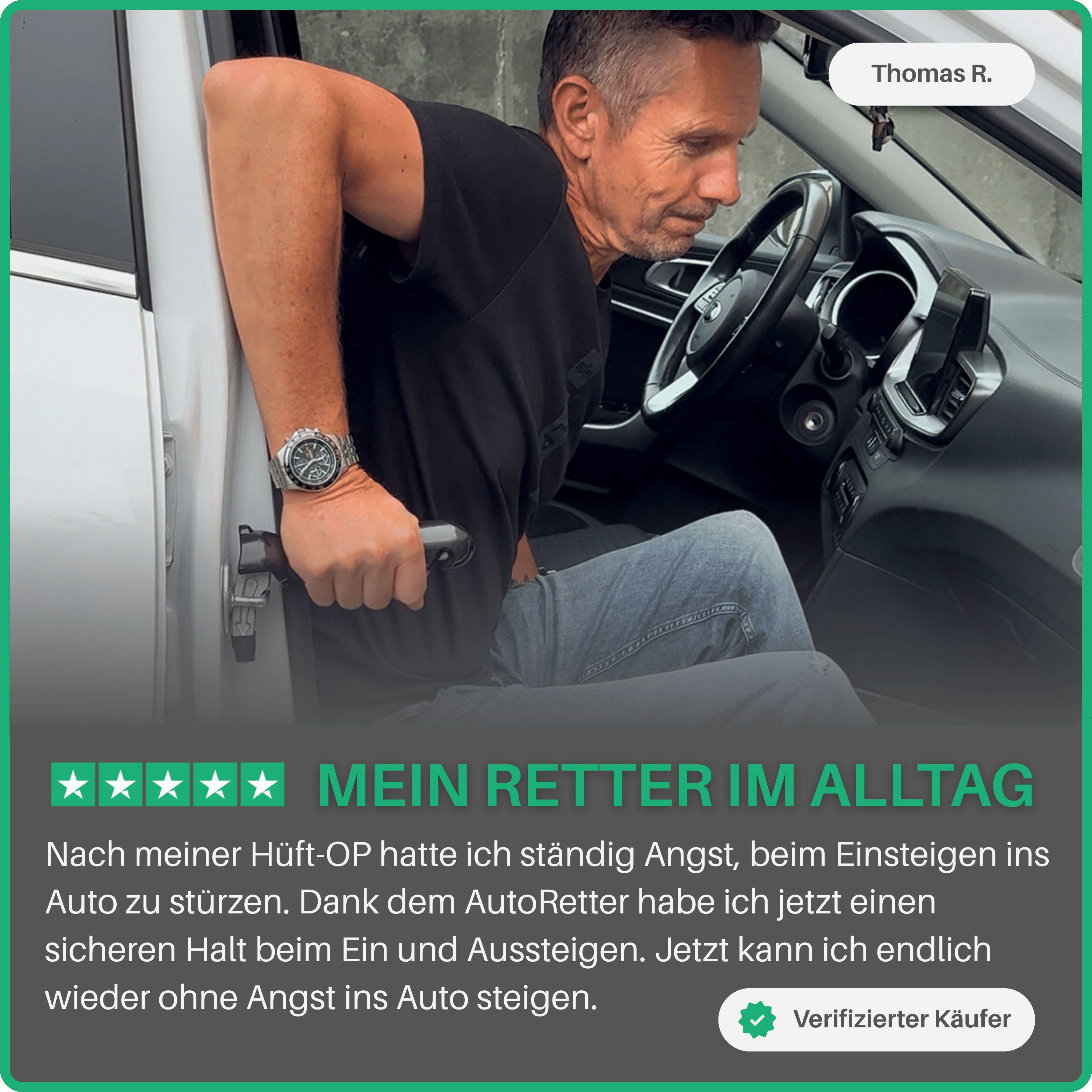 Ein ergonomisch geformter Haltegriff mit Anti-Rutsch-Technologie, der bis zu 150kg Gewicht trägt und in Sekundenschnelle einsatzbereit ist. Für festen Halt, ohne fremde Hilfe.